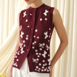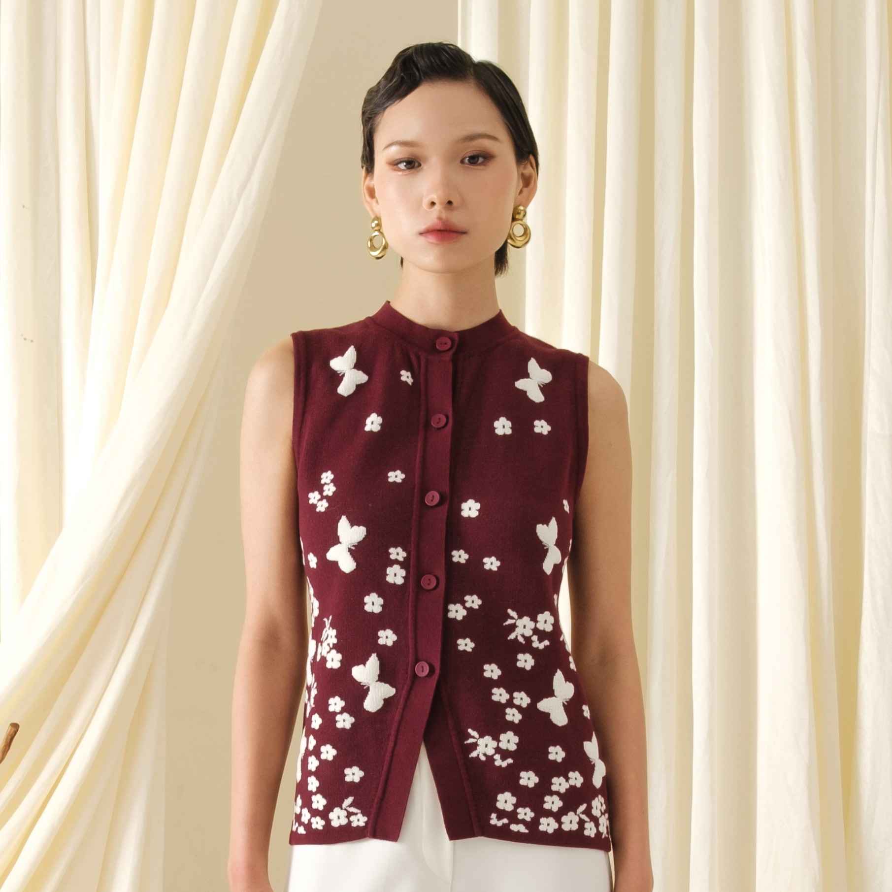 Easy to wear with its button-down front, this sleeveless knit top brings a touch of charm through its butterfly and flower details. Cozy, feminine, and made for daily moments.