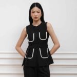 With the vest trend on the rise, this piece stands out with stylish details from practical pockets, a removable belt, to elegant buttons.
