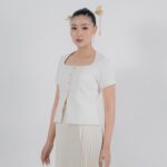 Elegantly designed with a square neckline, peplum details, and unique buttons that add a distinctive charm. Complete with a detachable belt from NOMA® for a versatile and polished look.