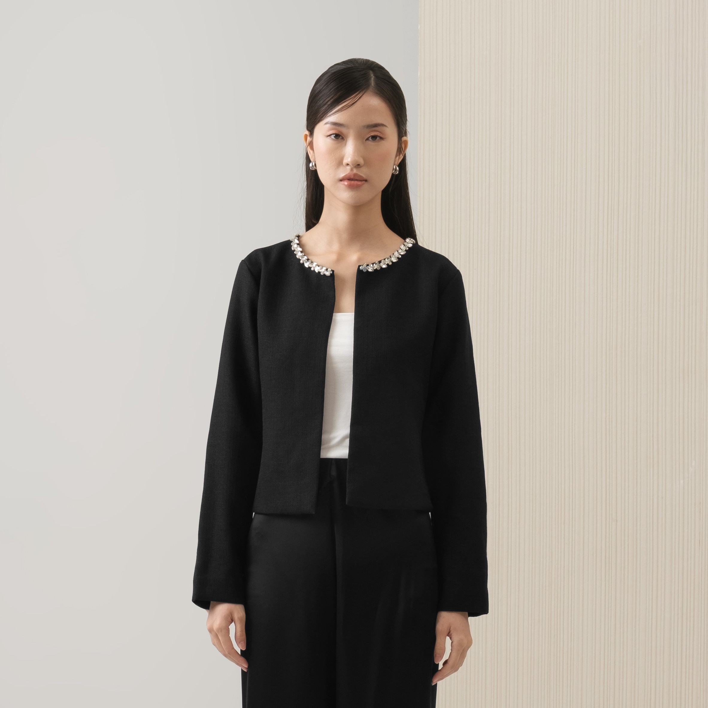 The long-sleeve version of our best-selling Monde Top. Designed with structured tweed and sparkling crystals along the neckline, perfect as an outer for semi-formal to formal events.