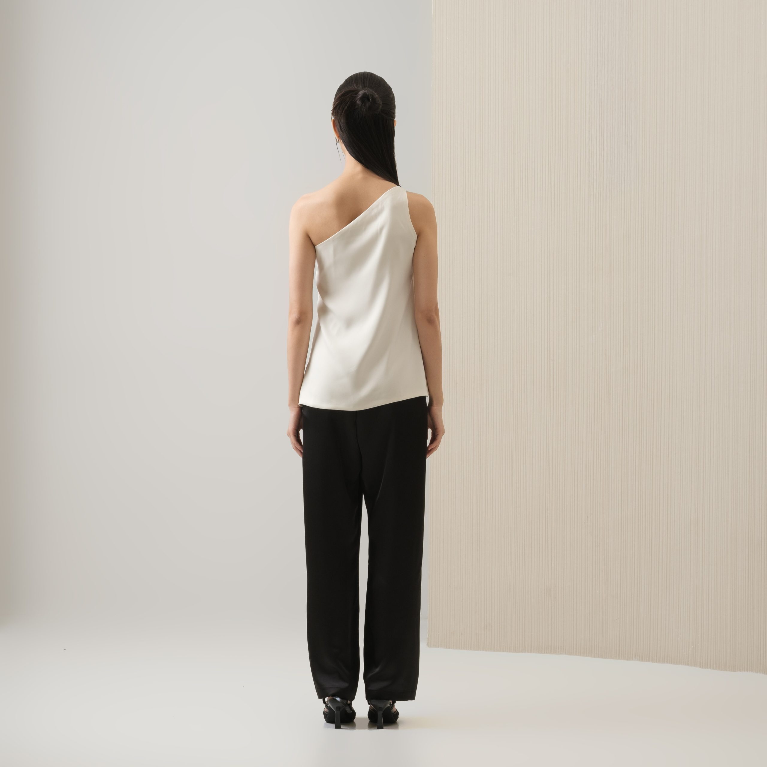 Elegant and refined, this satin top is designed with an asymmetric neckline. Finished with a silver diamond detail, it’s the perfect choice for a girls’ day out or a dinner date.
