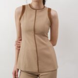 Sleek, sculpted sleeveless top with a high round neckline. A minimalist design elevated by two-toned suede details on the shoulders for a sophisticated finish. Versatile enough for AM to PM plans.