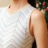 Sleeveless fitted midi dress featuring a classic chevron pattern. Effortlessly chic for Christmas dinner or any celebration, any time of the year.