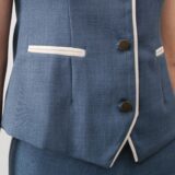 Tailored vest with a V-neckline, finished with contrast suede lining for a refined look. A polished, classy choice for any occasion.