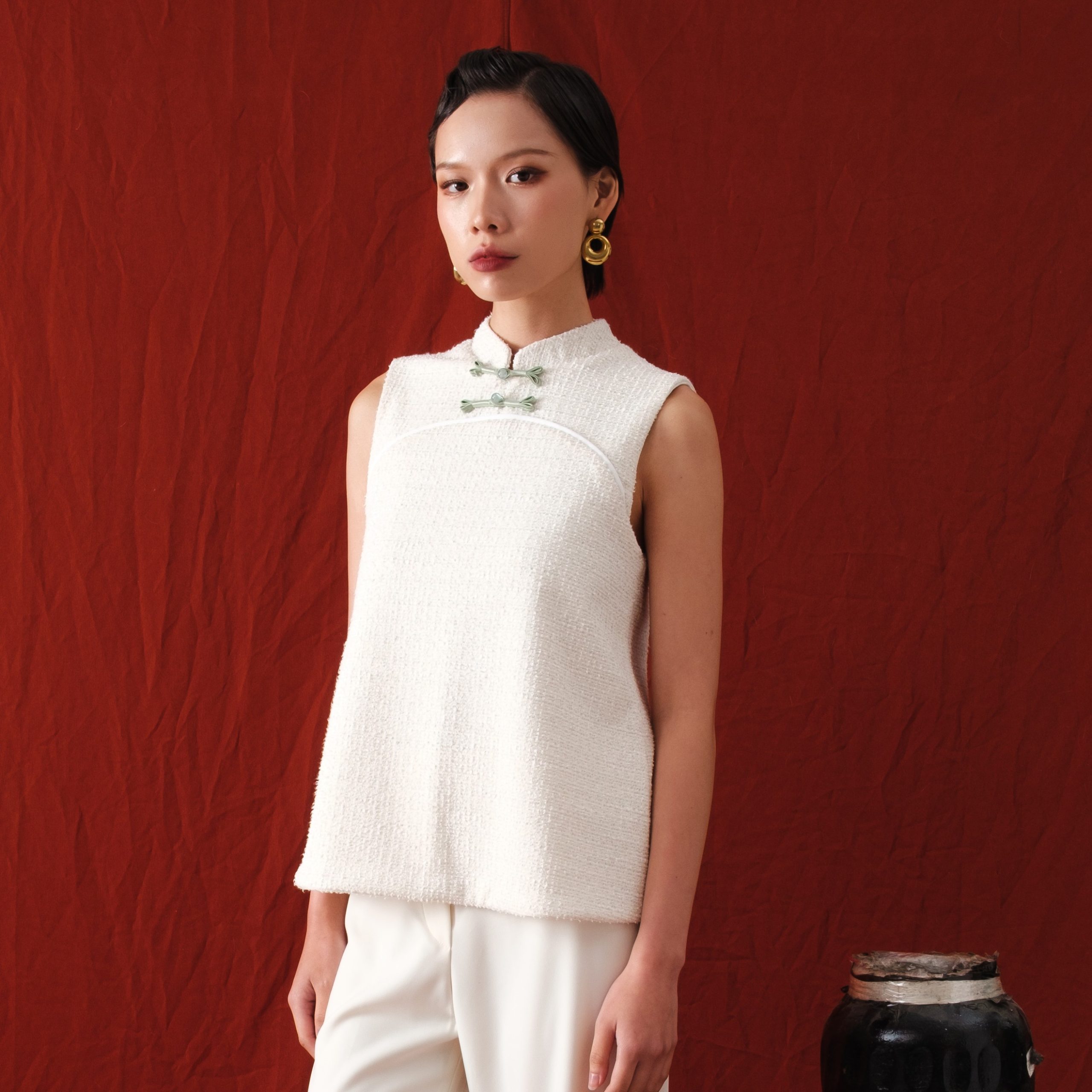 Minimalist in silhouette, made with classy textured tweed. Finished with iconic Chinese-element accents and a loose cut for effortless style and all-day comfort.