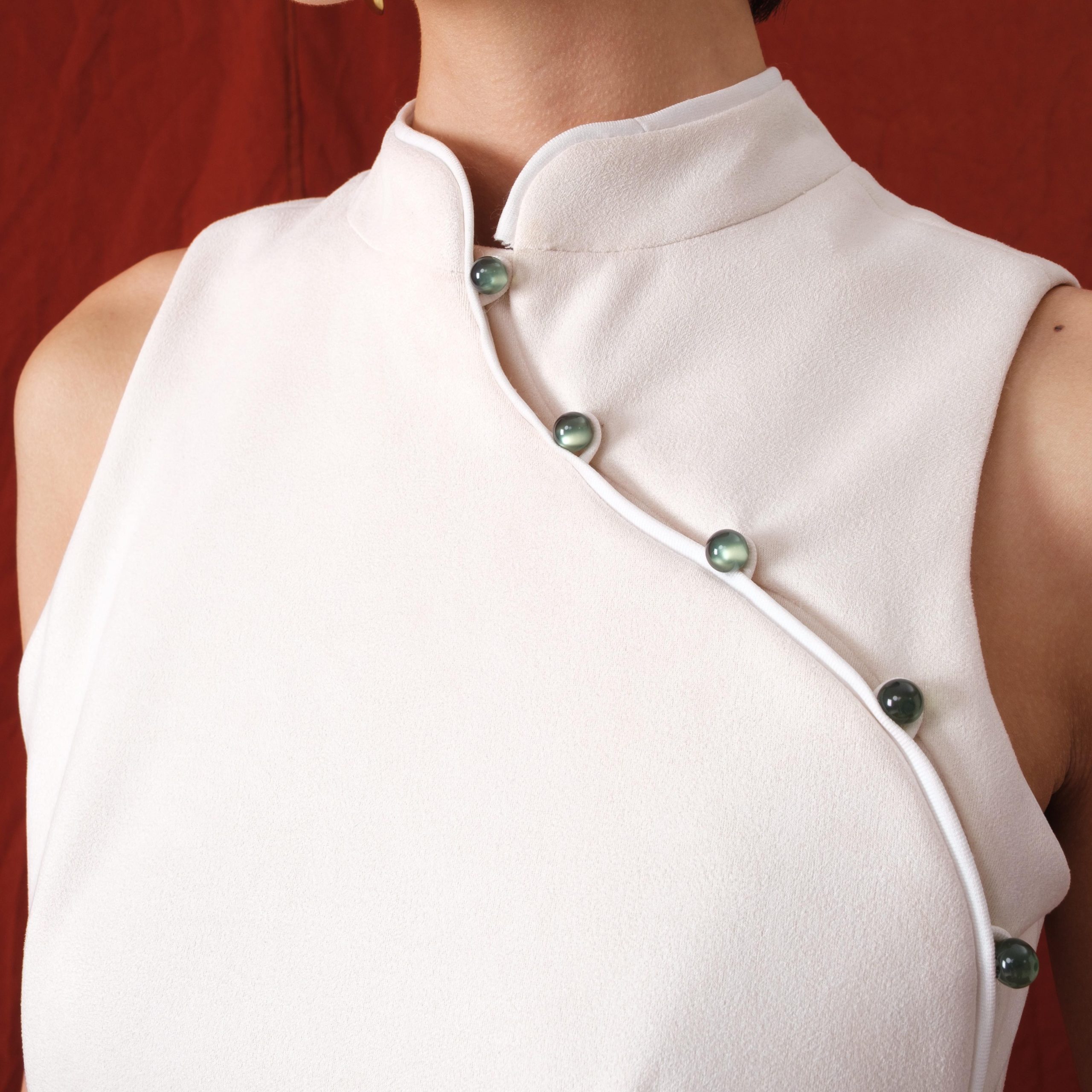 A classic suede top with a clean, minimalist feel. Featuring a signature asymmetric button closure for a classic touch, and finished with a structured A-line silhouette for a flattering look.