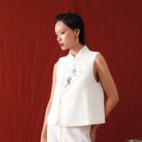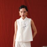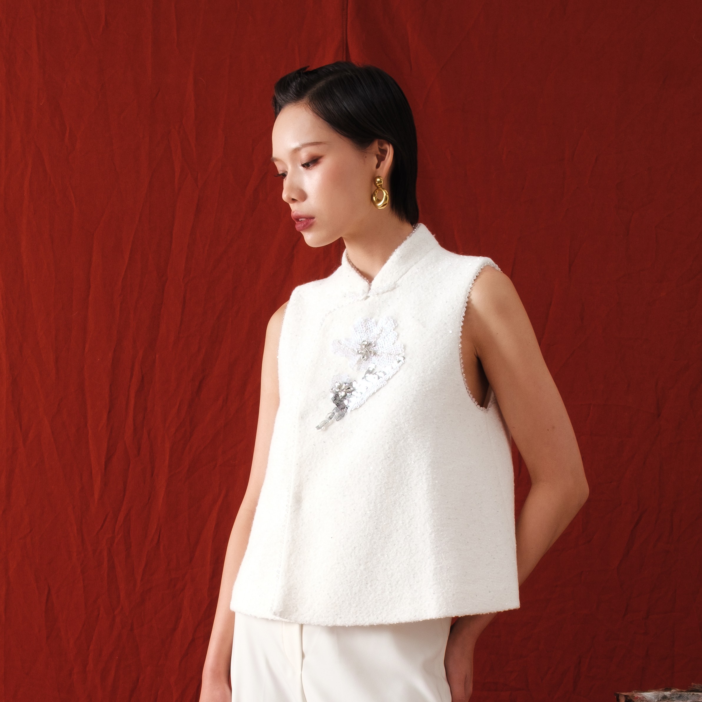 Made with an iconic Mandarin style collar in soft, luxurious wool. Minimalist at first glance, yet memorable with floral embroidery and beaded sequin embellishments.