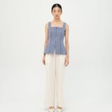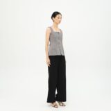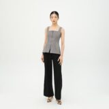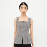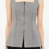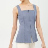 A sleek sleeveless top with a front zipper closure, fitted waist, and a subtle flare. A timeless piece that adds effortless elegance and remains stylish for years.